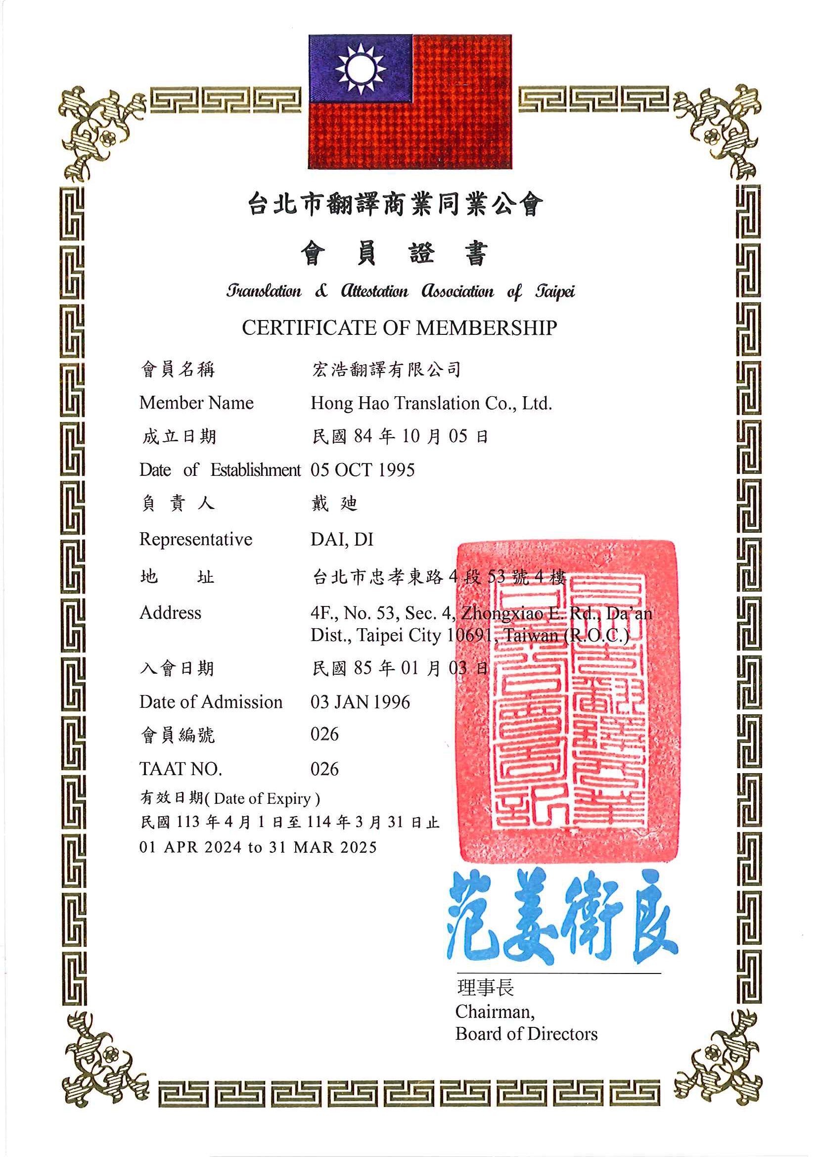 自1995年創立以來,宏浩翻譯深耕語言服務產業近30年。我們擁有專業的譯者團隊,堅持純人工翻譯,確保翻譯品質。從文件翻譯、法院公證、外交部公證到各國駐台/港辦事處認證,我們提供一站式服務,讓您的文件在全球通行無阻。數千家企業信賴的選擇,您的文件交給我們,放心!